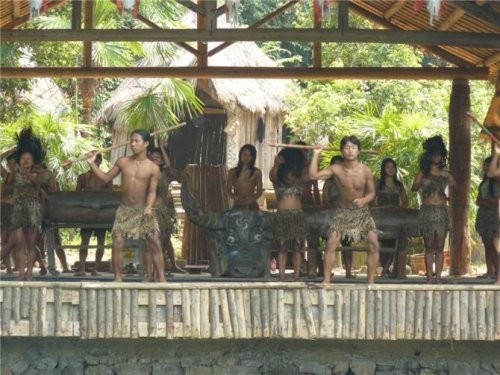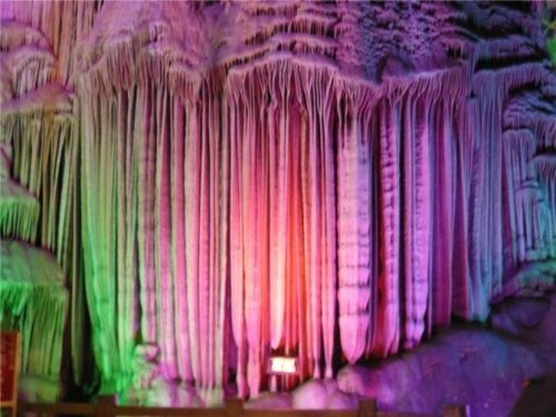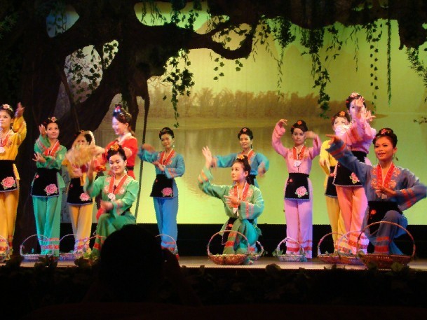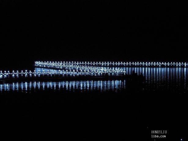 “忽逢桃花林,夹岸数百步,中无杂树,芳草鲜美,落英缤纷……”陶渊明的《桃花源记》此刻就呈现在眼前。“燕子村”是这里的一个村庄,也叫“长寿村”这里的人们生活的虽然清贫,早耕晚归,没别的娱乐,可这也使得他们的心态很平静,没有城市人那么多的欲望,因而,他们过的比城市人要快乐,吃的又是自己种的纯天然食品。这也是他们长寿的原因吧。“凝是山前已无路,柳暗花明又一村”燕子湖的尽头有个很小的岩洞,称为“燕子洞”。我们的船穿过这小洞,眼前豁然开然。虽已是中秋,可两岸的桃花依然灿烂,听导游说,这些桃花是四季花,但不结果。一路游去,来到了“原始部落”,看到两岸上一些土族人,全身不穿衣服,缀挂在胸前或腰间的仅是树叶和羽毛亮的皮肤,身佩弓箭,为客人吹响警号,跳起激越奔放的舞蹈,我们也向他们呼叫“巴麦,巴麦”。“巴麦”是土族语言,意思是“朋友”。