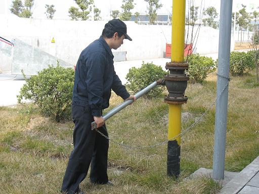 公司抢险队在接到报警电话1分钟后即赶到事故现场,按程序向公司相关领导、部门报告险情,预案设定的指挥及解救小组及时赶到现场进行指挥。抢险队员分工明确,配合默契,关闭阀门、降压、停气、组织开挖寻找漏气点,5分钟内控制住了险情。
