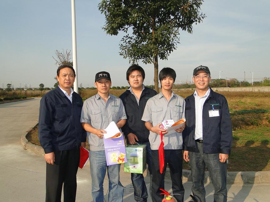 经过角逐,制造部的袁龙获得第一名,设备部的吴建明获得第二名,制造部的王付静获得第三名,总指挥姚文震给大家颁发奖品并合影留念。
