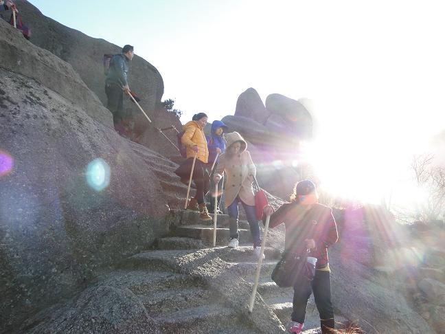 为表彰双峰公司2011年度取得优秀成绩的员工,激励员工努力工作,奋发向上,11月4日、5日,公司安排三个工厂先进工作者及GMS获奖人员共60余人一起赴安徽黄山风景区旅游。在黄山景区,我们采用“上山爬上去,下山坐索道下来”的方式进行,由各工厂经理和行政人事经理为小组长,分七个小组一起上山,大家戏称为“七大门派围攻光明顶”,通过一段长达三个多小时的长途登山,全体人员顺利登上山顶,看到了无数的奇松、怪石,看到了高山之巅的日出,领略了许多从未见过的美丽风景,购置了品种繁多的山区特产,使大家在繁忙的工作之余度过一个快乐而有意义的周末。