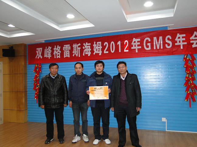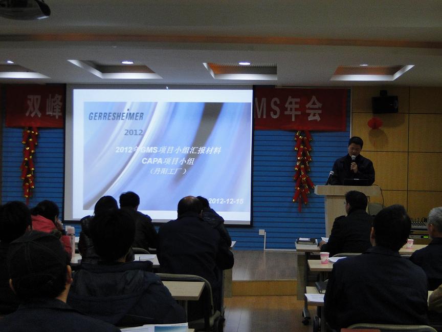 2012年12月15日星期六,双峰公司三个工厂的GMS小组在丹阳工厂四楼培训教室召开了2012年度GMS会议。会议进行了三个工厂的最佳项目团队提名的介绍,2013年GMS目标和计划征求意见讲解并分小组讨论确定了2013年的GMS目标和计划。
