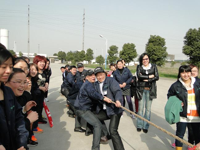 今天上午,为庆祝女同胞们的节日,双峰公司举办了趣味运动会,设女子拔河、绑腿走这两个极具娱乐性和参与性的团体比赛项目。