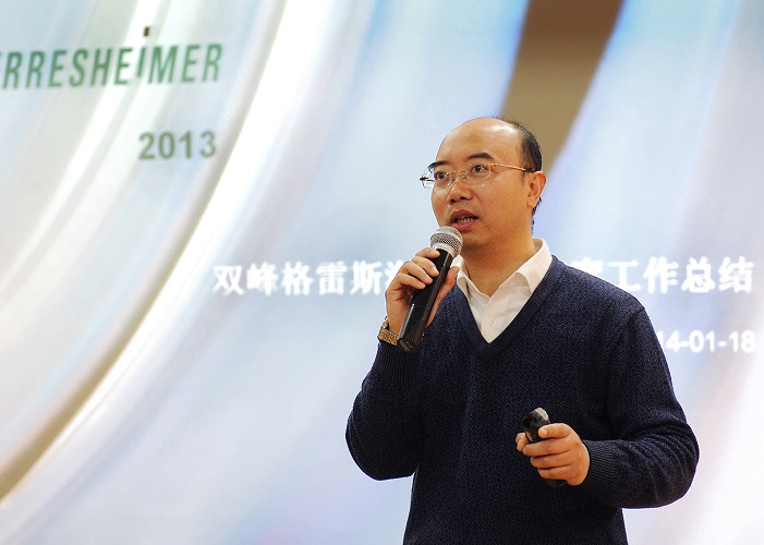 2014-01-18日下午,双峰公司二零一三年度表彰大会在丹阳工厂四楼培训中心圆满召开。公司总经理巢建峰为大家作了2013年度工作总结,巢建峰总经理列举了在过去一年中双峰取得的成绩和需要提升的工作。