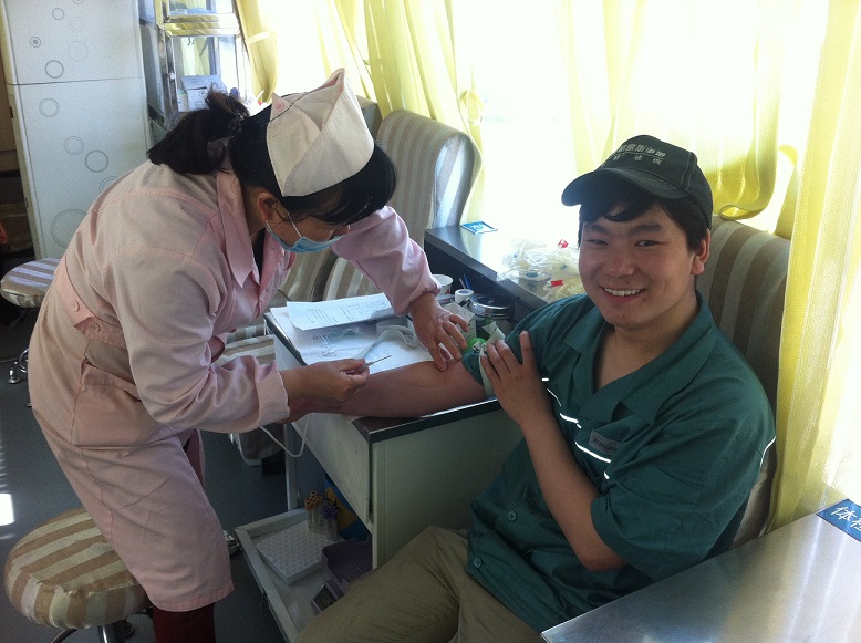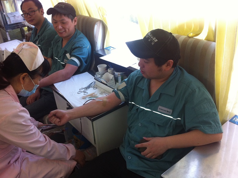 继2012年响应号召,为公益爱心事业贡献力量,2014年4月30日上午,双峰公司员工的再次义务献血活动有序的进行着。热心的同事们在血站工作人员的指导下进行血液检查,被确认符合鲜血要求的员工高兴的上了献血车。