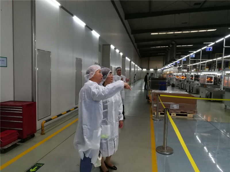 会后巢总等高层陪同贵宾们参观丹阳工厂现场,绿叶集团薛总等领导