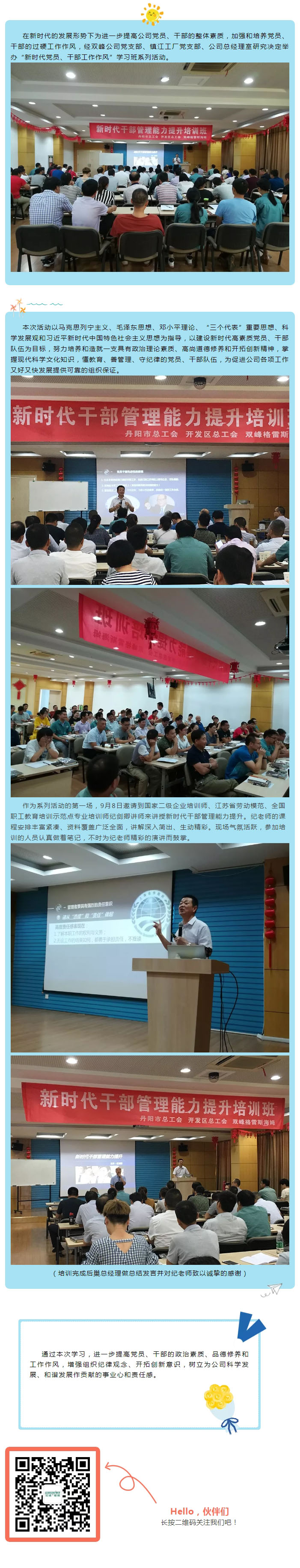 在新时代的发展形势下为进一步提高公司党员、干部的整体素质,加强和培养党员、干部的过硬工作作风,经双峰公司党支部、镇江工厂党支部、公司总经理室研究决定举办“新时代党员、干部工作作风”学习班系列活动。